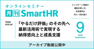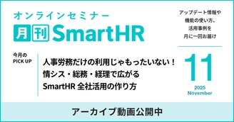 SmartHRをこれから使い始める方向けのシリーズセミナーです。入社手続き編・文書配付編・従業員情報申請編・給与明細編・人事評価編の5つのセミナーがあります。それぞれの機能でできることや設定手順、ポイントを体系的・効率的に学ぶことができます。