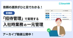 2026年1月、SmartHRのアカウント招待・文書配付・入社手続きなどの入社時に必要なタスクを一画面で一括で依頼・進捗管理ができる「招待管理機能」を新たにリリース予定です。