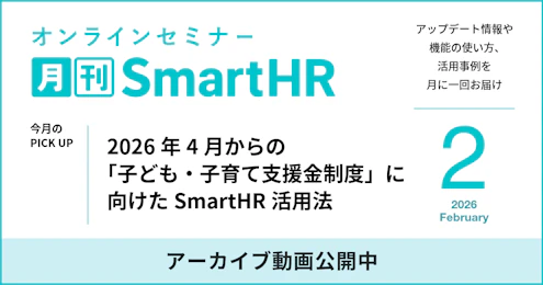 本セミナーでは、制度の概要をおさらいしながら、対応を考えるためのポイントを整理するとともに、本制度対応以外にも応用できる、対応パターンごとのSmartHR活用法をご紹介いたします。